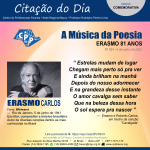 Erasmo Carlos – 5 junho 22 – CPP – Citação do Dia – CARD 24 – Instagram