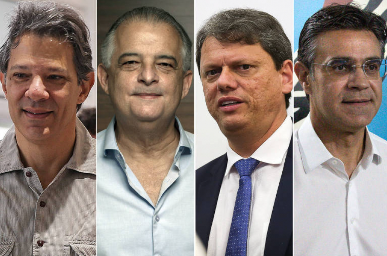 São eles, por ordem decrescente: Fernando Haddad (PT), Márcio França (PSB), Tarcísio de Freitas (Republicanos) e Rodrigo Garcia – atual governador (PSDB).