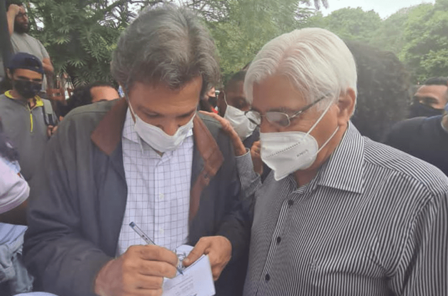 Fernando Haddad, pré-candidato do PT e o professor Azuaite Martins de França, do CPP.