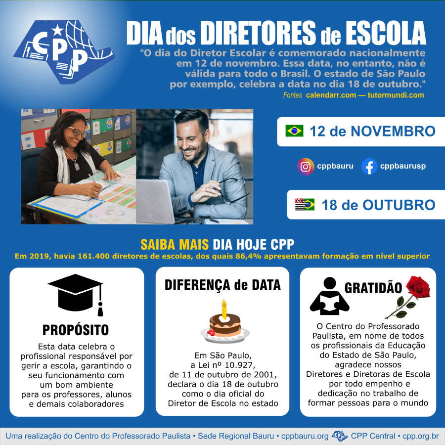 Esta data celebra o profissional responsável por gerir a escola garantindo o seu funcionamento com um bom ambiente para os professores, alunos e demais colaboradores dos colégios.
