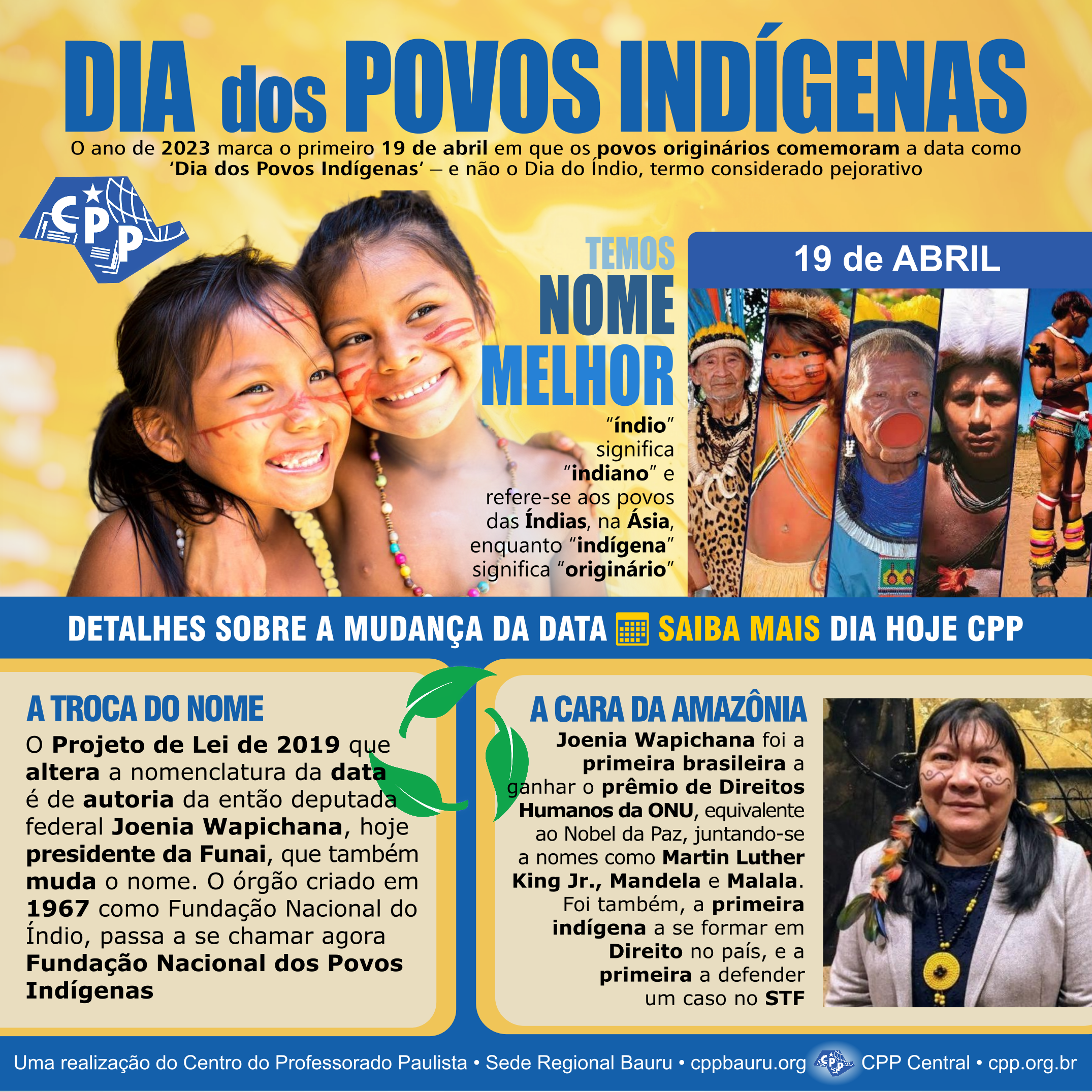 O Projeto de Lei de 2019 que altera a nomenclatura da data é de autoria da então deputada federal Joenia Wapichana, hoje presidente da Funai, que também muda o nome. O órgão criado em 1967 como Fundação Nacional do Índio, passa a se chamar agora Fundação Nacional dos Povos Indígenas.