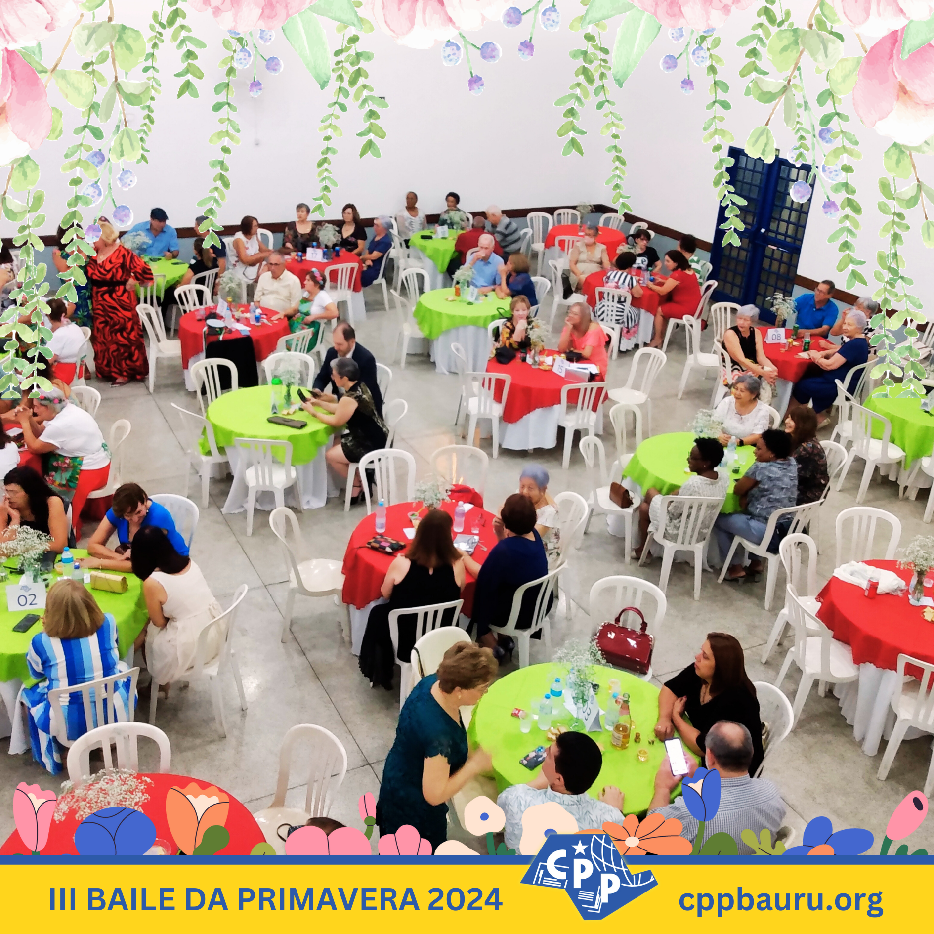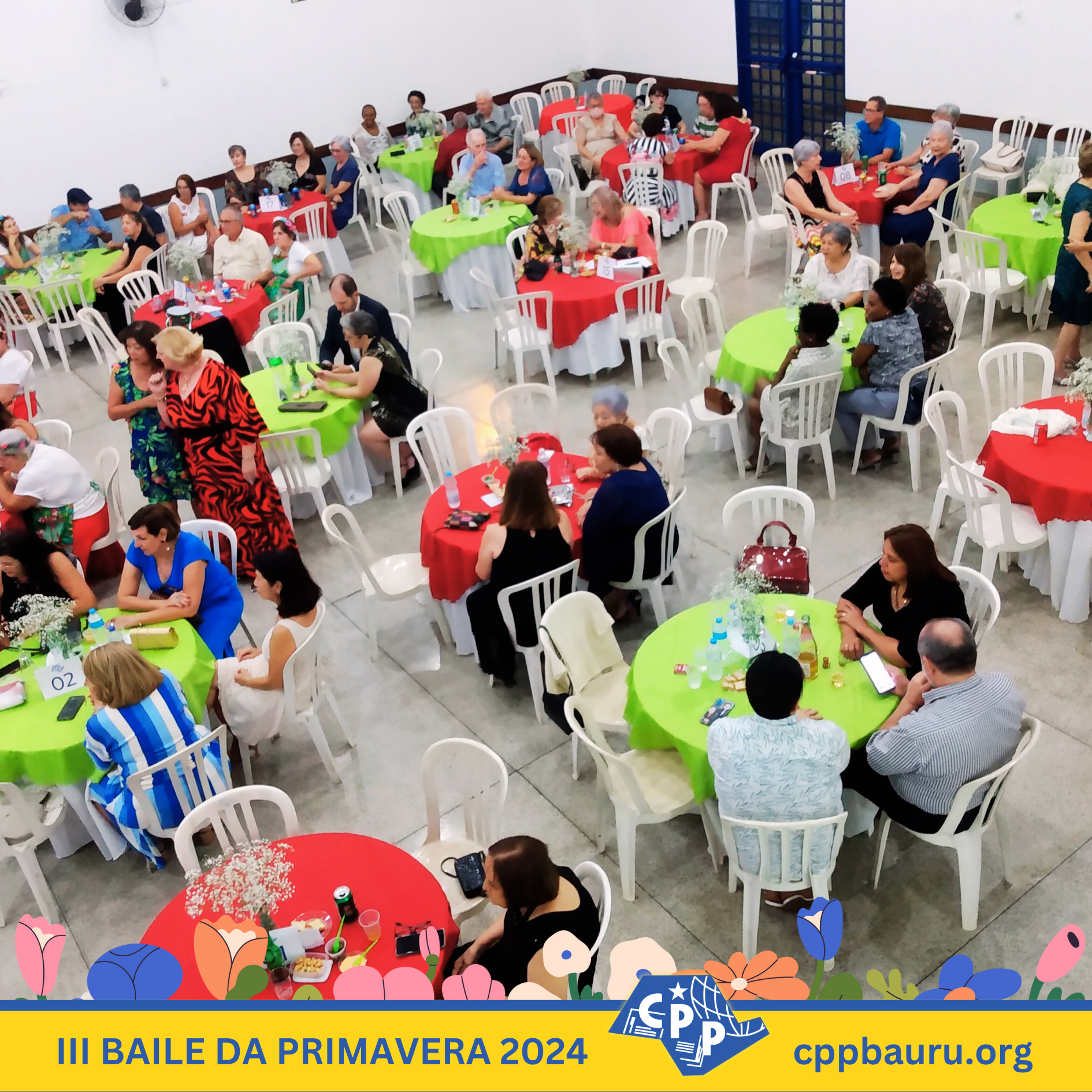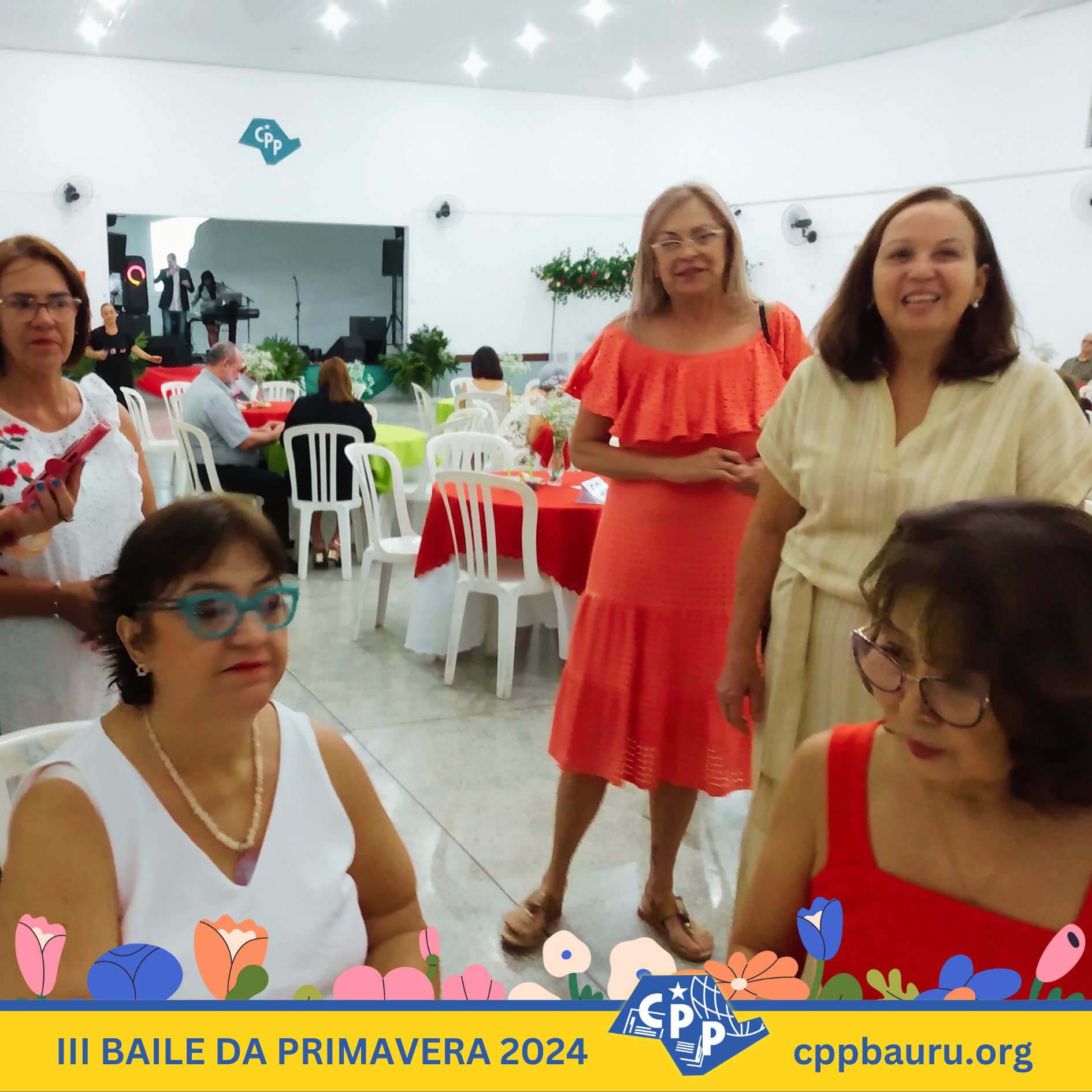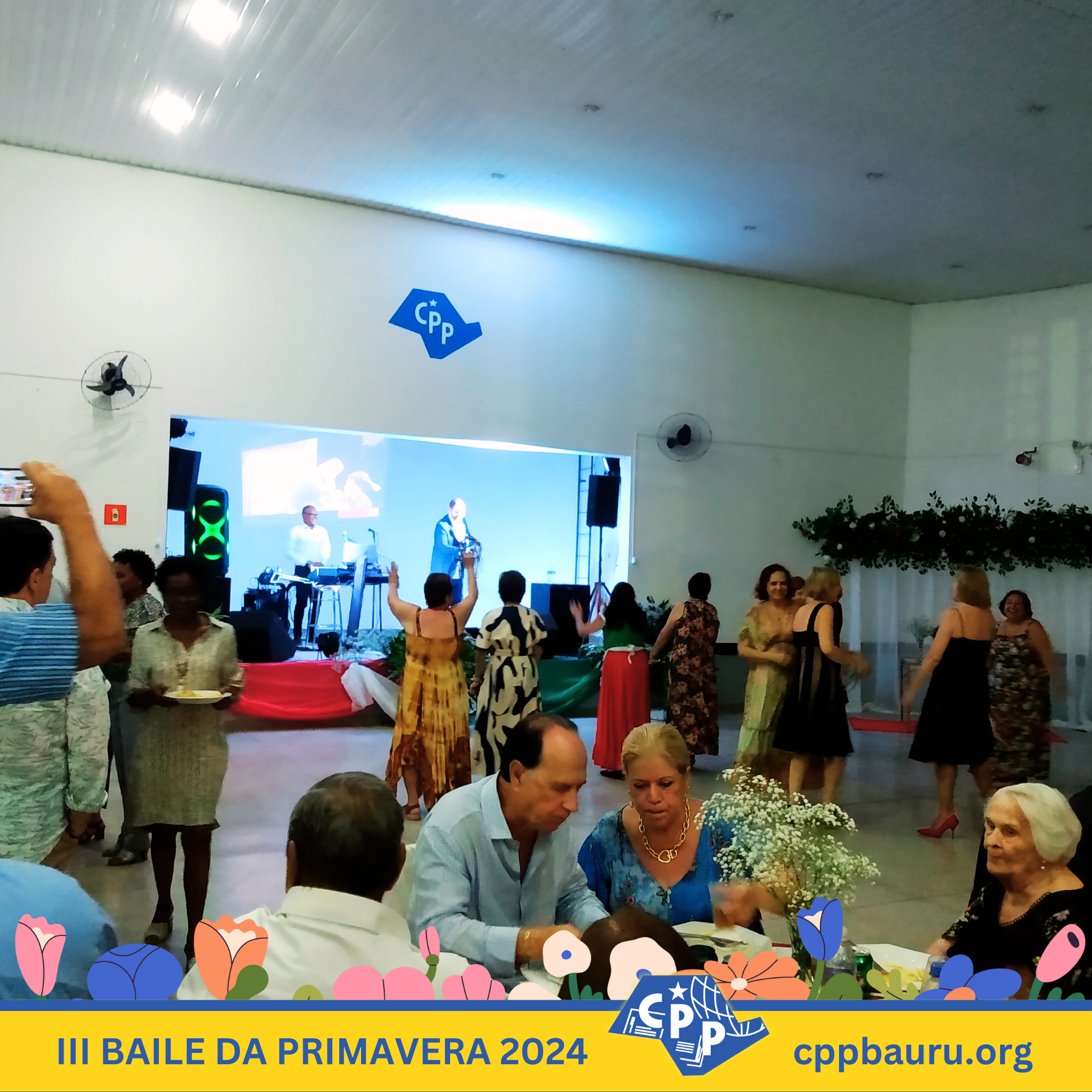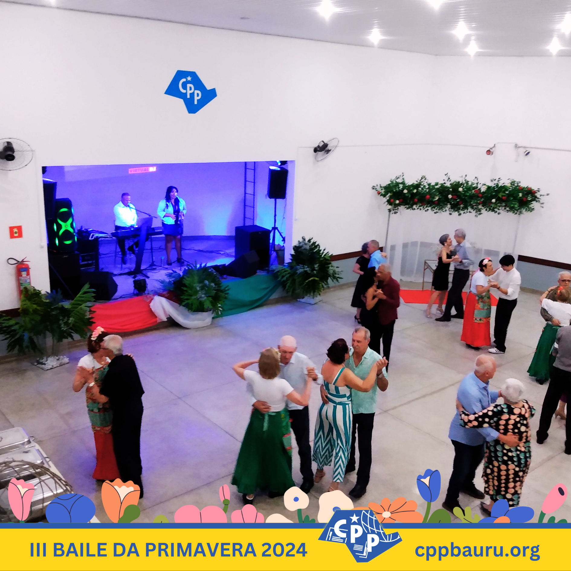 Em comemoração ao Dia Mundial do Professor e à chegada da primavera de 2024, o CPP Bauru realizou seu ‘III Baile da Primavera’, que contou com a presença de mais de 150 pessoas e teve muita música, dança, jantar italiano e bolo para fechar a celebração. Confira as fotos do evento, que contou com a banda de Plínio e Inez, o tenor Carlos Herrera e o grupo de dança Cris Lopes, que animaram os convidados do baile. Em breve, disponibilizaremos também o vídeo da festa, com todos esses momentos especiais e os encontros marcantes de professores, alunos, associados e familiares que compareceram ao ‘III Baile da Primavera’ do CPP Bauru.