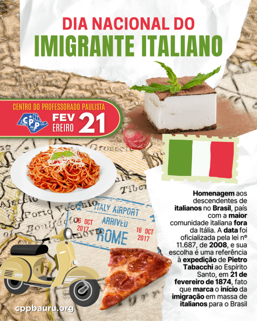 Homenagem aos descendentes de italianos no Brasil, país com a maior comunidade italiana fora da Itália.