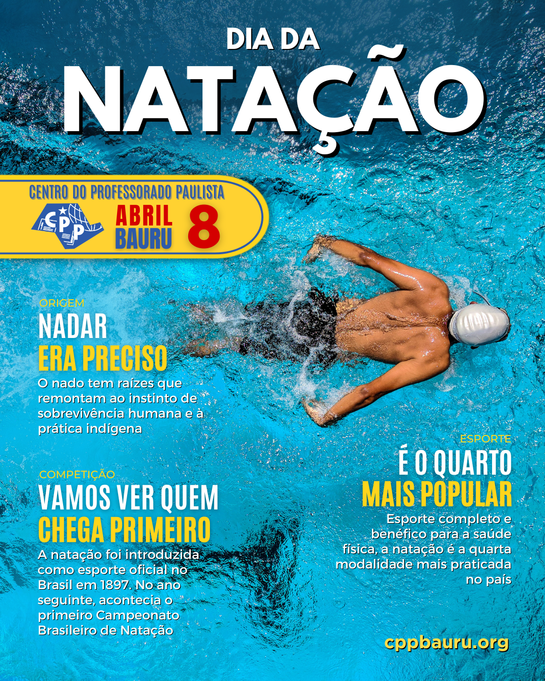 Esporte completo e benéfico para a saúde física, a natação é a quarta modalidade mais praticada no país, com raízes que remontam ao instinto de sobrevivência humana e à prática indígena, sendo introduzida como esporte oficial no Brasil em 1897. No ano seguinte, acontecia o primeiro Campeonato Brasileiro de Natação. A natação trabalha diversos músculos, desenvolvendo força, aptidão cardiovascular e resistência respiratória, podendo ser praticada em todas as fases da vida.