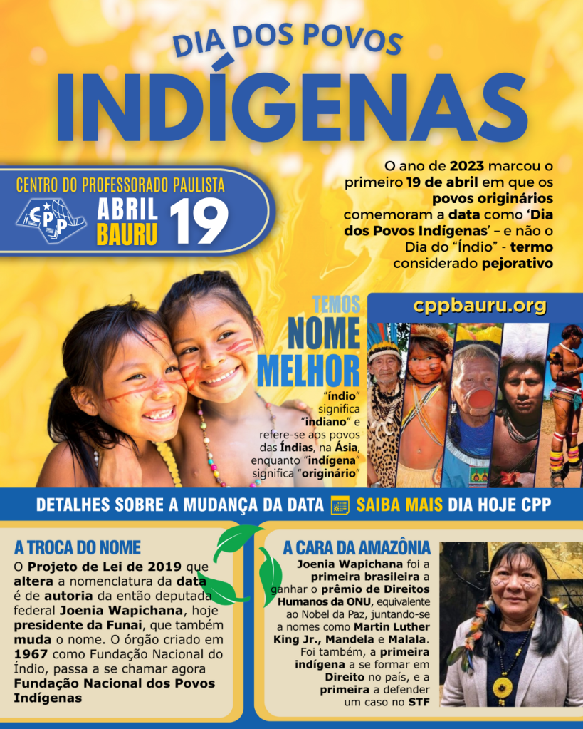 O Projeto de Lei de 2019 que altera a nomenclatura da data é de autoria da então deputada federal Joenia Wapichana, hoje presidente da Funai, que também muda o nome. O órgão criado em 1967 como Fundação Nacional do Índio, passa a se chamar agora Fundação Nacional dos Povos Indígenas.