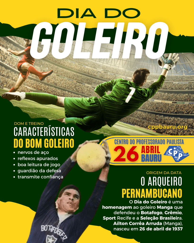 O Dia do Goleiro é uma homenagem ao goleiro Manga que defendeu o Botafogo, Grêmio, Sport Recife e a Seleção Brasileira. Aílton Corrêa Arruda (Manga) nasceu em 26 de abril de 1937.