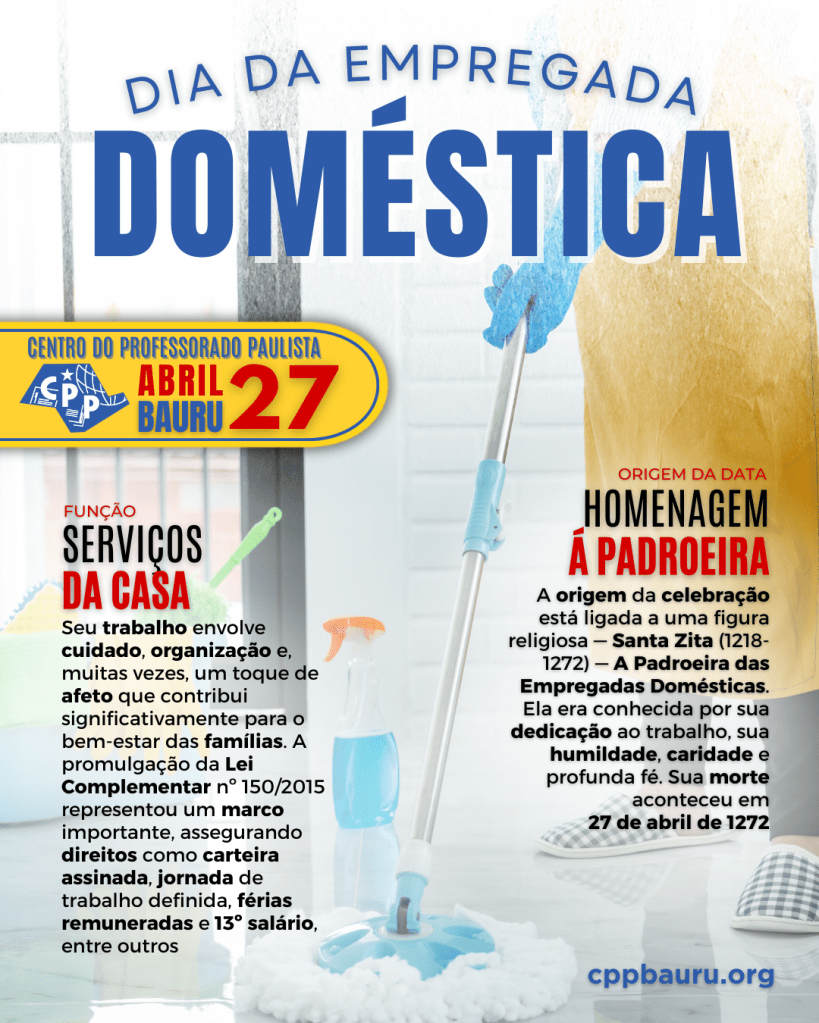 A origem da celebração está ligada a uma figura religiosa — Santa Zita (1218-1272) — A Padroeira das Empregadas Domésticas. Ela era conhecida por sua dedicação ao trabalho, sua humildade, caridade e profunda fé. Distribuía parte de seus ganhos aos pobres e era admirada por sua bondade. Sua morte aconteceu em 27 de abril de 1272.