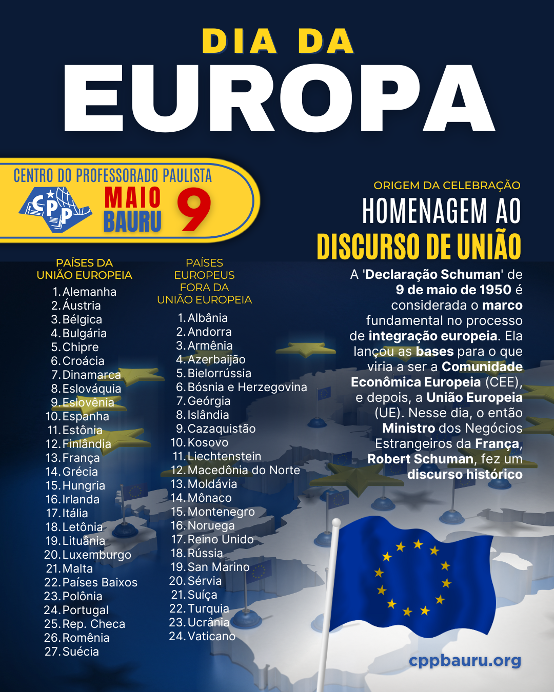 A ‘Declaração Schuman’ de 9 de maio de 1950 é considerada o marco fundamental no processo de integração europeia. Ela lançou as bases para o que viria a ser a Comunidade Econômica Europeia (CEE), e depois, a União Europeia (UE). Nesse dia, o então Ministro dos Negócios Estrangeiros da França, Robert Schuman, fez um discurso histórico.