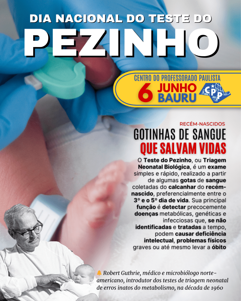 Uma data de extrema importância para a saúde infantil, um marco que simboliza a prevenção, o diagnóstico precoce e a garantia de uma vida mais saudável para milhares de recém-nascidos em todo o país. O Teste do Pezinho, surgiu na década de 1960, nos Estados Unidos, idealizado pelo médico Robert Guthrie. No Brasil, ele começou a ser implementado de forma mais consistente a partir da década de 1970, com o Programa Nacional de Triagem Neonatal (PNTN) sendo estabelecido pelo Ministério da Saúde em 2001.