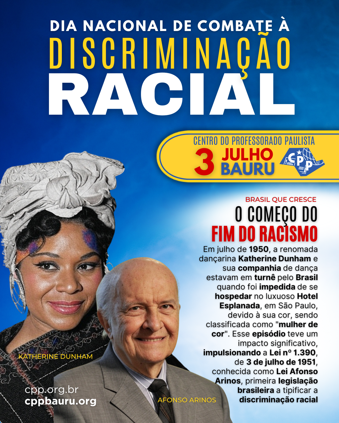 Mais de sete décadas após a promulgação da Lei Afonso Arinos, o Dia Nacional de Combate à Discriminação Racial continua sendo um chamado à ação. É um dia para reforçar a importância de políticas públicas inclusivas, da educação antirracista, da valorização da cultura e história afro-brasileiras, e do reconhecimento e respeito à diversidade. O racismo no Brasil é um problema profundo e complexo, com raízes históricas na escravidão que moldaram desigualdades sociais, econômicas e de acesso a oportunidades. Mesmo com avanços legislativos posteriores, como a Lei nº 7.716/1989 (Lei do Crime Racial), que torna o racismo crime inafiançável e imprescritível, e a Lei nº 10.639/2003, que tornou obrigatório o ensino de história e cultura afro-brasileira nas escolas, a luta pela equidade racial está longe de terminar.