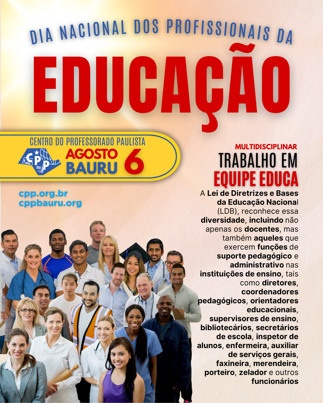 Portanto, em 6 de agosto, celebramos o esforço, a paixão e a dedicação de uma equipe completa que, com seu trabalho conjunto, contribui para a formação de cidadãos e para o desenvolvimento social. É um dia para agradecer e refletir sobre a importância de todos que, de alguma forma, participam do processo educacional. Uma data especial para homenagear e reconhecer a importância de todos aqueles que atuam diretamente na formação de crianças, jovens e adultos.