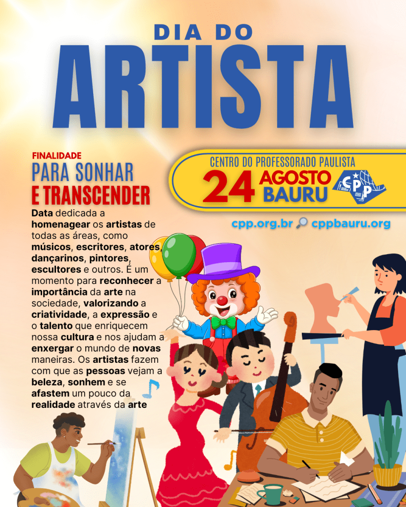 Data dedicada a homenagear os artistas de todas as áreas, como músicos, escritores, atores, dançarinos, pintores, escultores e outros. É um momento para reconhecer a importância da arte na sociedade, valorizando a criatividade, a expressão e o talento que enriquecem nossa cultura e nos ajudam a enxergar o mundo de novas maneiras. Os artistas fazem com que as pessoas vejam a beleza, sonhem e se afastem um pouco da realidade através da arte.