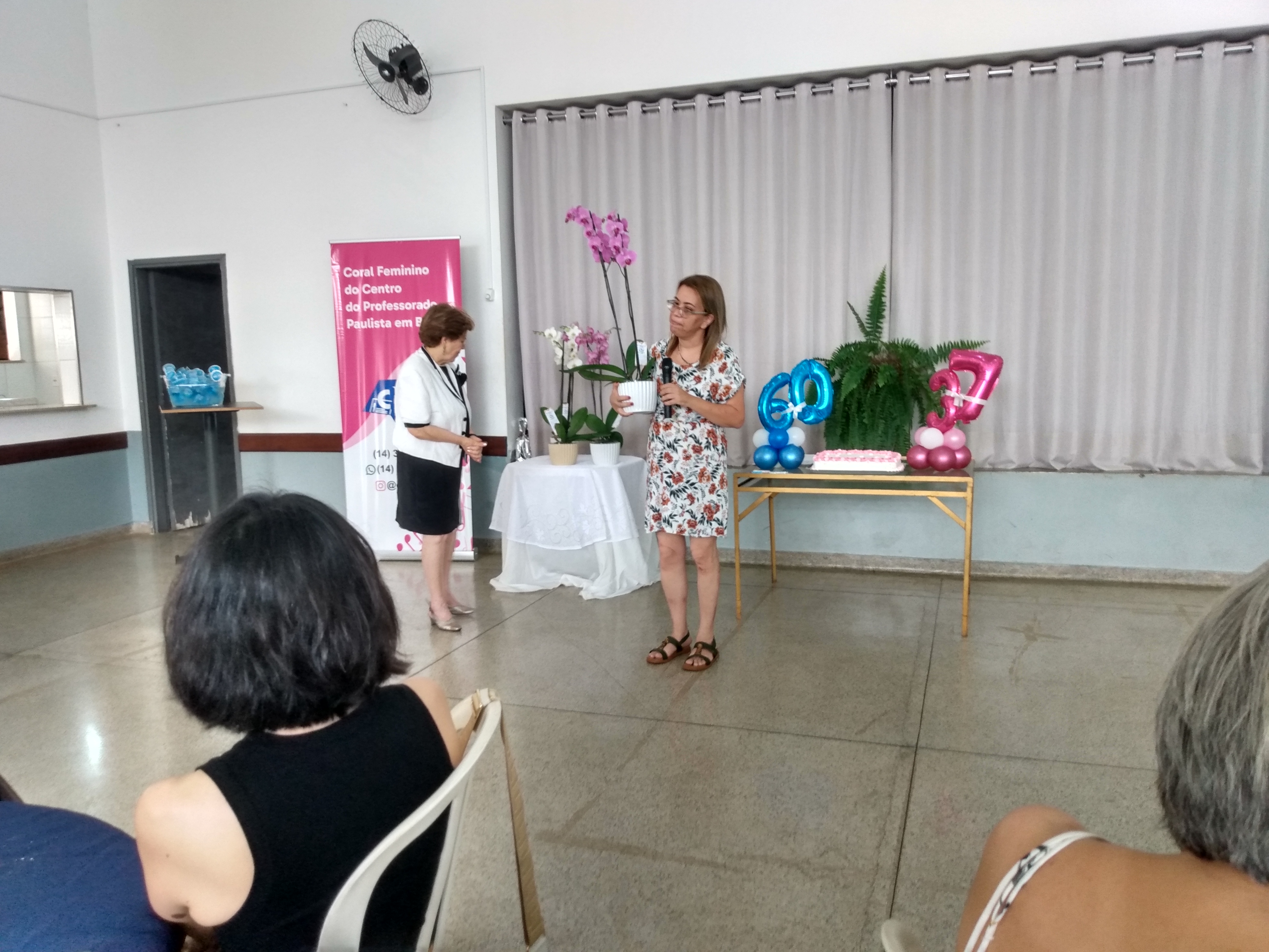 O Centro do Professorado Paulista recebeu 180 pessoas em sua celebração do jubileu de diamante de 60 anos, e dos 37 anos de seu Coral Feminino, que ofereceu duas canções aos presentes. Nesse almoço especialíssimo, com associados, familiares e amigos, tivemos ainda a apresentação do Grupo de Dança Cris Lopes, e homenagens a algumas personalidades que fizeram parte desses 60 anos de história da Sede Regional Bauru do CPP. Confira as fotos do almoço, e nos próximos dias, veja também, os vídeos do evento.