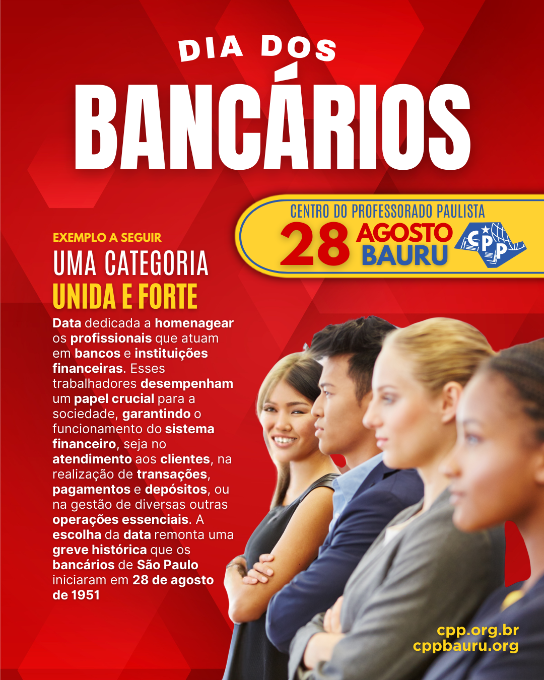 Data dedicada a homenagear os profissionais que atuam em bancos e instituições financeiras. Esses trabalhadores desempenham um papel crucial para a sociedade, garantindo o funcionamento do sistema financeiro, seja no atendimento aos clientes, na realização de transações, pagamentos e depósitos, ou na gestão de diversas outras operações essenciais. Em alguns estados brasileiros, como a Paraíba, a data é um feriado para a categoria, o que significa que as agências bancárias permanecem fechadas em celebração.