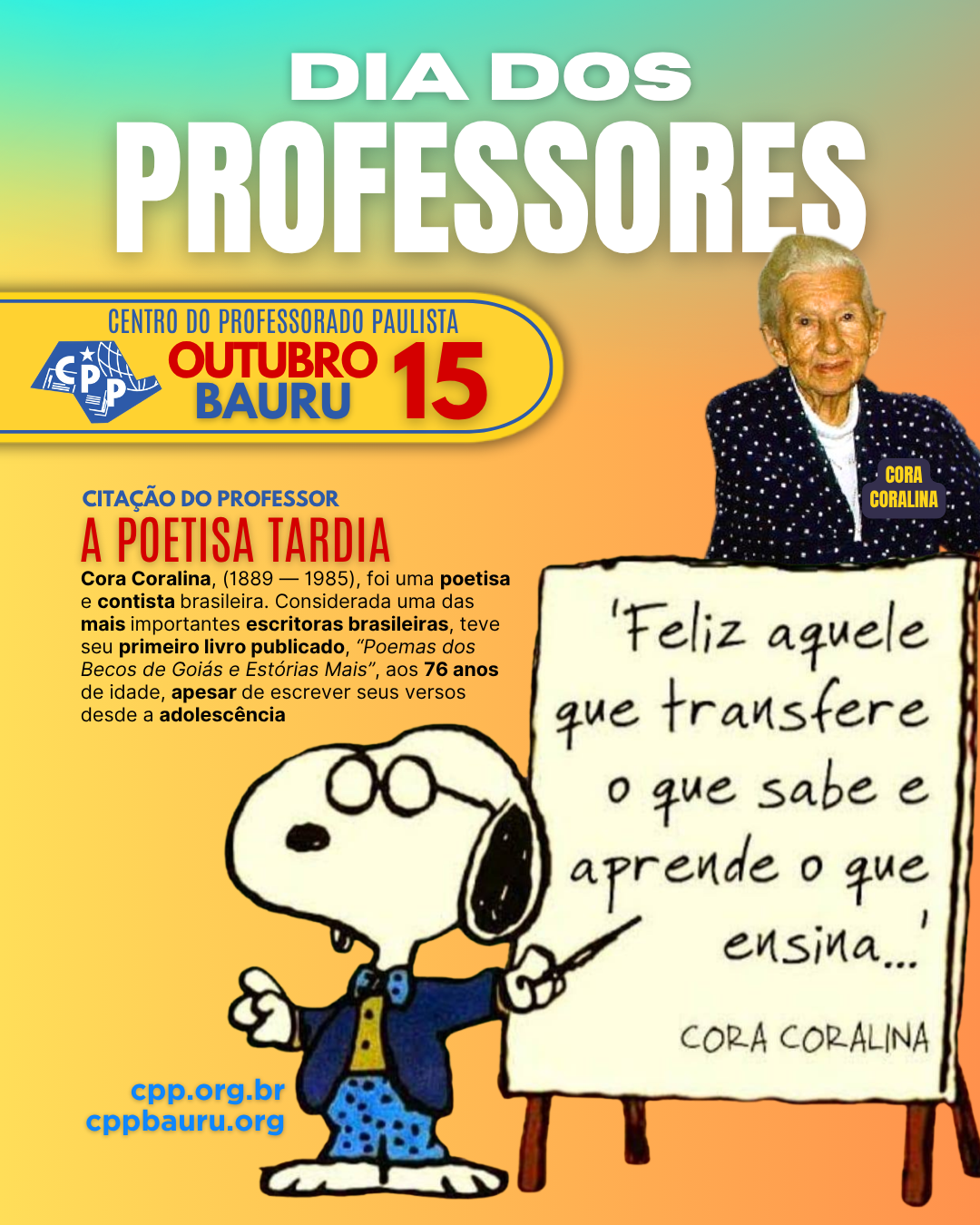 “Feliz aquele que transfere o que sabe, e aprende o que ensina.” — Cora Coralina