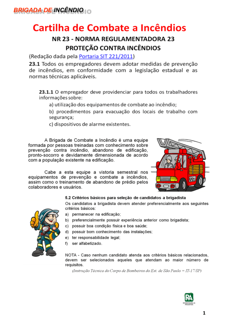 CARTILHA DA BRIGADA DE INCÊNDIO